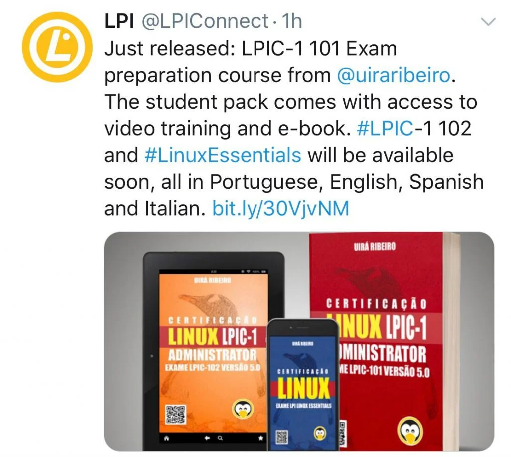 Nosso novo Livro para LPIC-1 é recomendado pela LPI e reconhecido para quem quer tirar a Certificação LPIC-1.